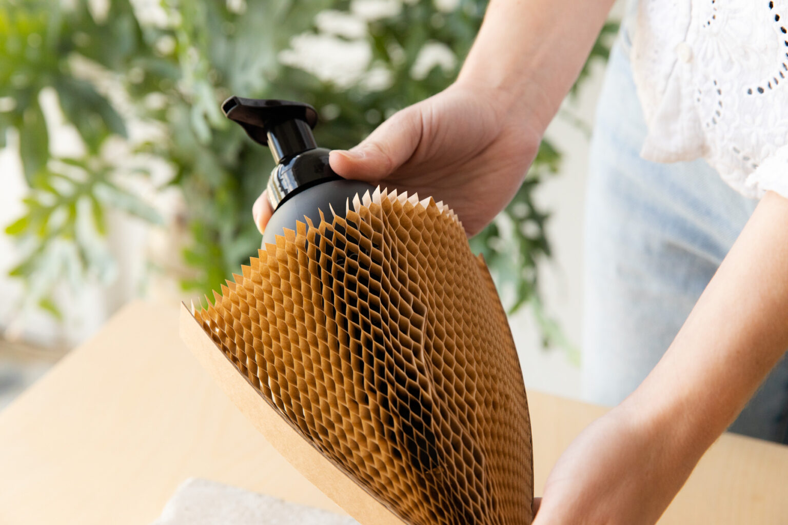 A patented honeycomb design made from paper that helps protect your products and our planet. A sleeve that fits your product no matter what. And one that seamlessly fits in with the look and feel of your brand.
